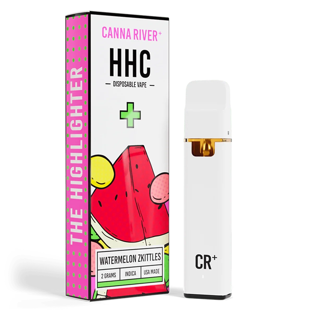 Canna River – HHC – Watermelon Zkittles (Indica) – 2G – Disposable. Sweet watermelons and candy notes with a delicate hempy background. The kind of flavor profile to send you over the rainbow.