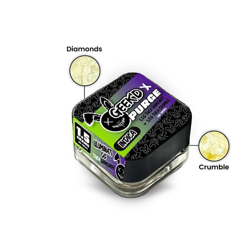 GEEK’D x PURGE – THC-A DIAMONDS + CRUMBLE – 3-GRAMS – ILLUMINATI OG x STRAWBERRY CHEESECAKE – INDICA