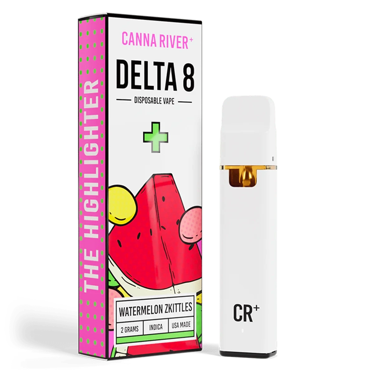 Canna River – D8 THC – Watermelon Zkittles – Indica – 2G – Disposable. Sweet watermelons and candy notes with a delicate hempy background. The kind of flavor profile to send you over the rainbow.